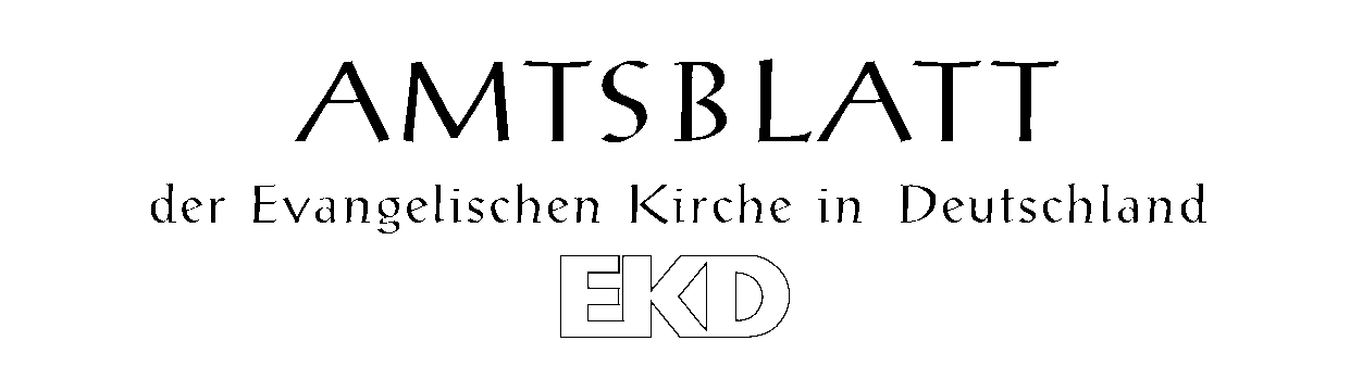 Herausgegeben vom Kirchenamt der Evangelischen Kirche in Deutschland in Hannover. E-Mail: amtsblatt@ekd.de • Internet: www.kirchenrecht-ekd.de Das »Amtsblatt der Evangelischen Kirche in Deutschland« erscheint in der Regel monatlich. Satz und Druck: Kirchenamt der EKD • Herrenhäuser Str. 12 • 30419 Hannover |